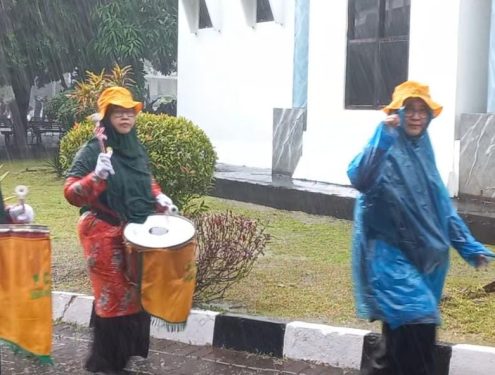Hujan deras mengiringi kedatangan peserta pawai Ta’aruf