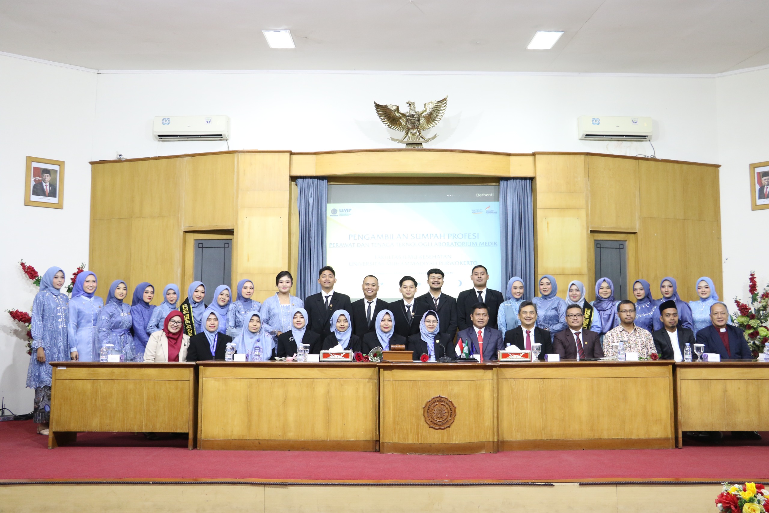 Sebanyak 37 lulusan Fakultas Ilmu Kesehatan Universitas Muhammadiyah Purwokerto (UMP) secara resmi mengambil sumpah profesi sebagai Ners dan Ahli Tenaga Laboratorium Medik. Acara yang berlangsung dengan khidmat ini dihadiri oleh sejumlah tokoh penting, termasuk Ketua DPW PPNI Jawa Tengah, Asep Iskandar S. Kep, Sp. Kom, dan Ketua DPW Patelki Jawa Tengah, Ciciningsih S. Tr Kes., serta beberapa pimpinan rumah sakit di wilayah tersebut.